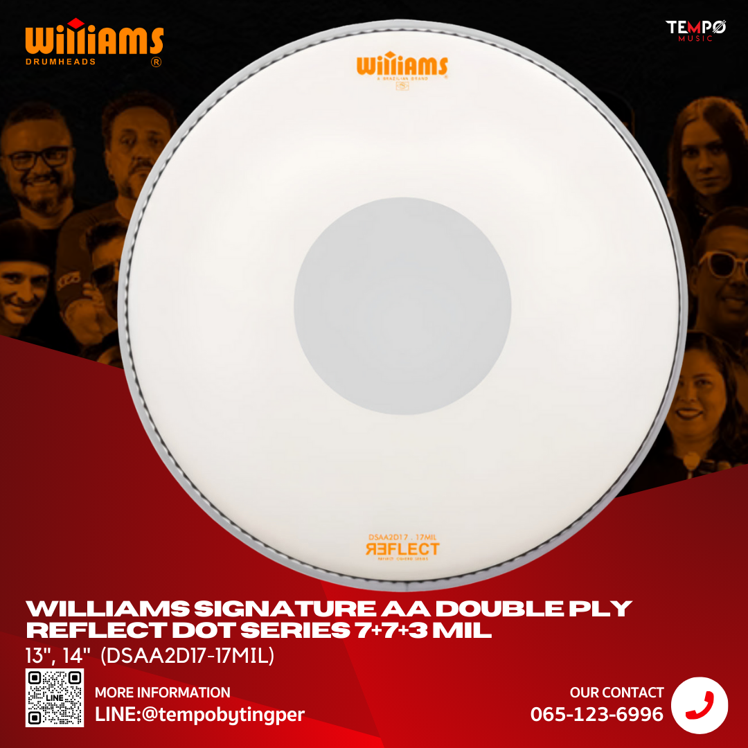 หากคุณกำลังมองหาหนังกลองที่ให้ทั้ง เสียง Attack คมชัด คุมโอเวอร์โทนได้ดี และทนต่อแรงตีสูง หนังกลอง Williams Signature AA Double Ply Reflect Dot Series รุ่น 17 MIL คือคำตอบที่ลงตัวที่สุดสำหรับมือกลองสมัยใหม่ โดยเฉพาะผู้ที่ต้องการเสียงกลองสแนร์ที่ “พุ่ง ชัด และกระชับ” ในทุกการตี